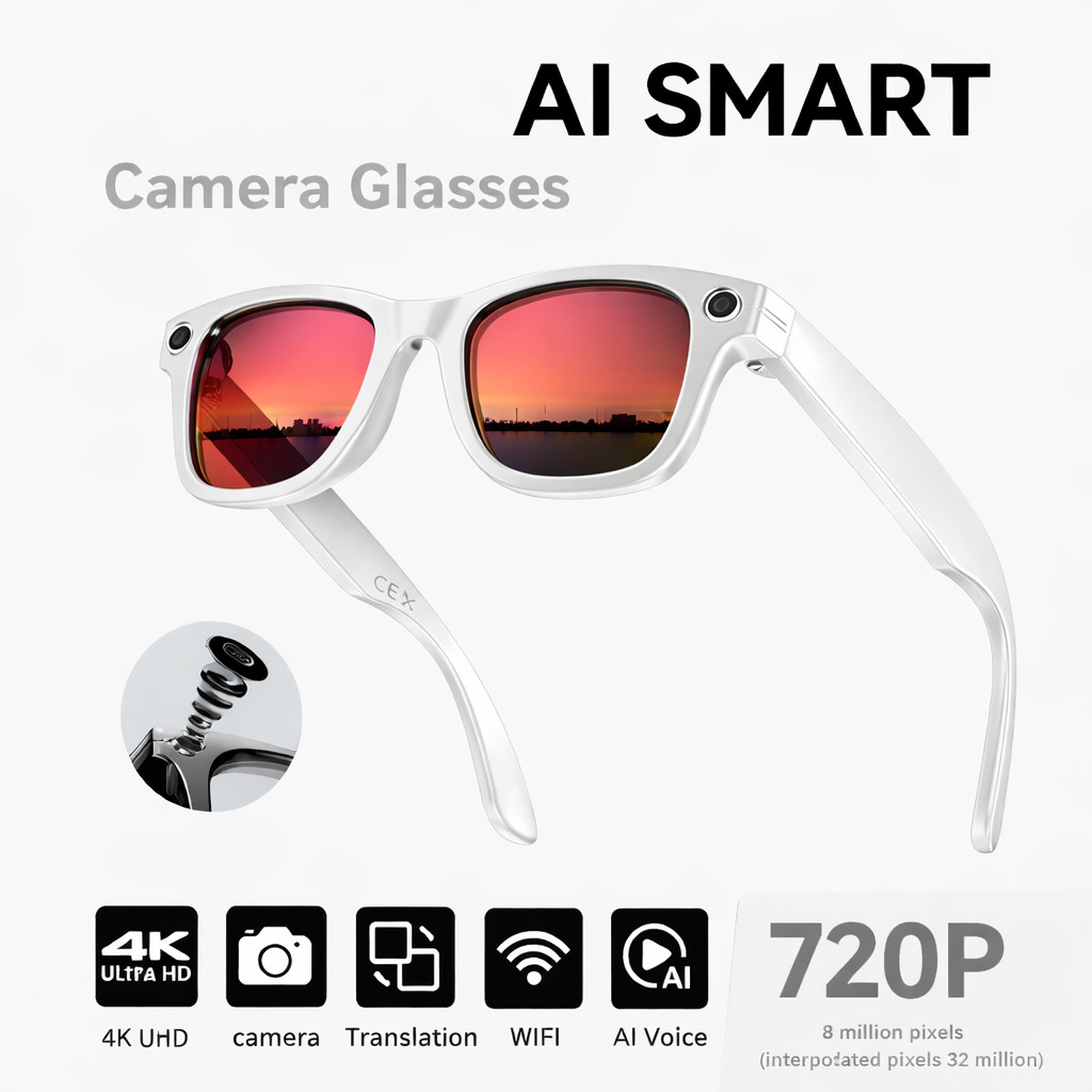 The AI Smart Glasses feature an impressive 8MP dual lens camera system capable of capturing stunning photos and videos. With 720p HD video recording, you can record clear, high-quality footage of your daily activities, travel adventures, or important moments. The dual lens design provides excellent depth perception and versatility, making these glasses perfect for content creators, travellers, and anyone wanting to document their world from a first-person perspective.
